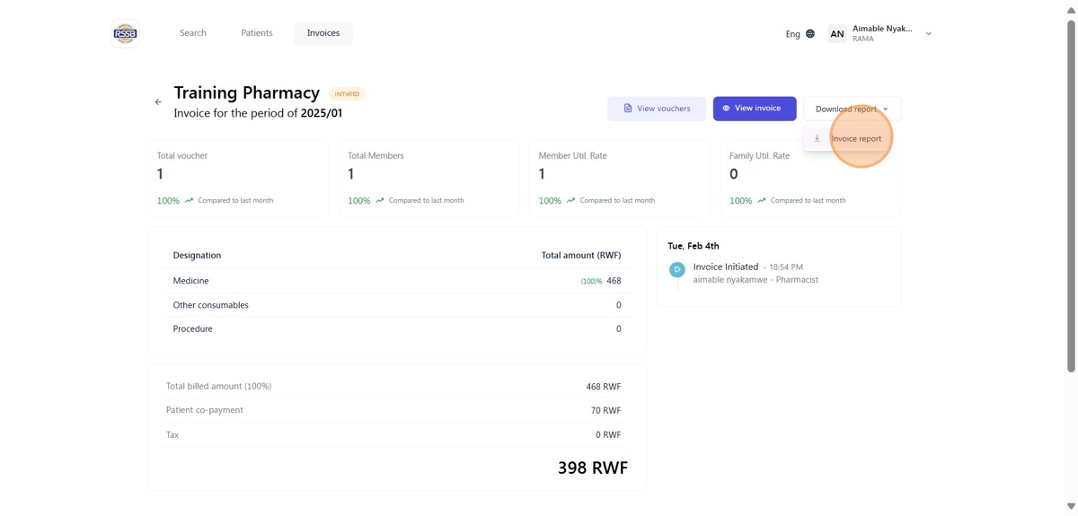 Click "Invoice report"