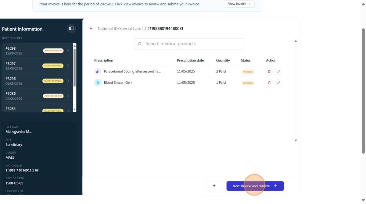 If the patient has received both medicalised product and medicalised procedure, add both of them and Click "Next: Review and confirm"
