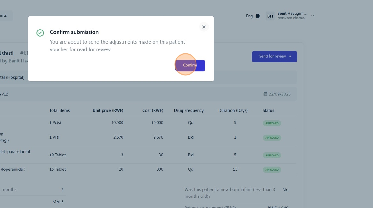 Click "View created voucher" to see if the medical advisor has reviewed for the price request.