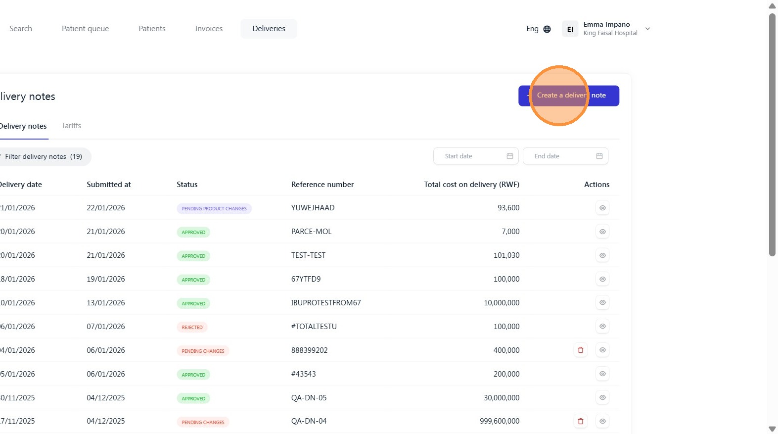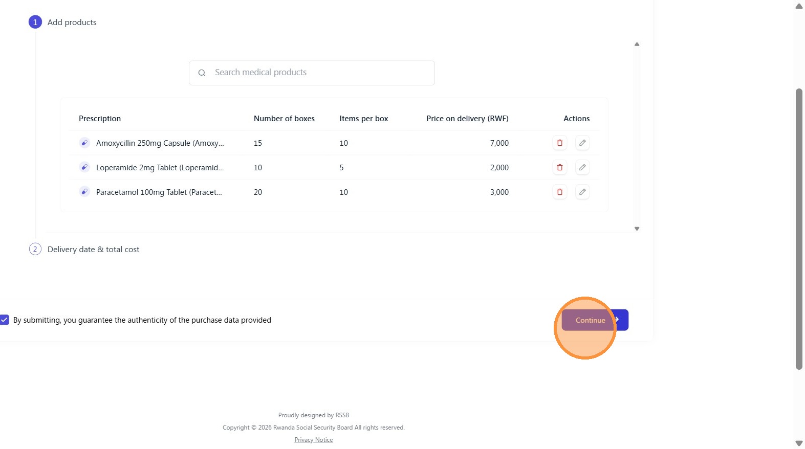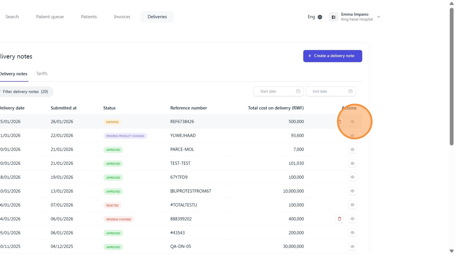 The delivery note will have the initiated status as it will be verified by RSSB officer to be approved.