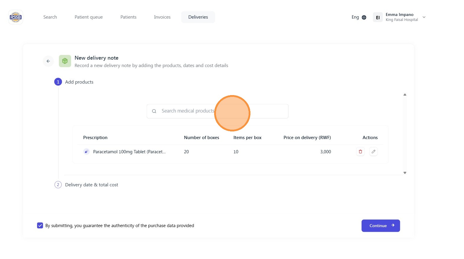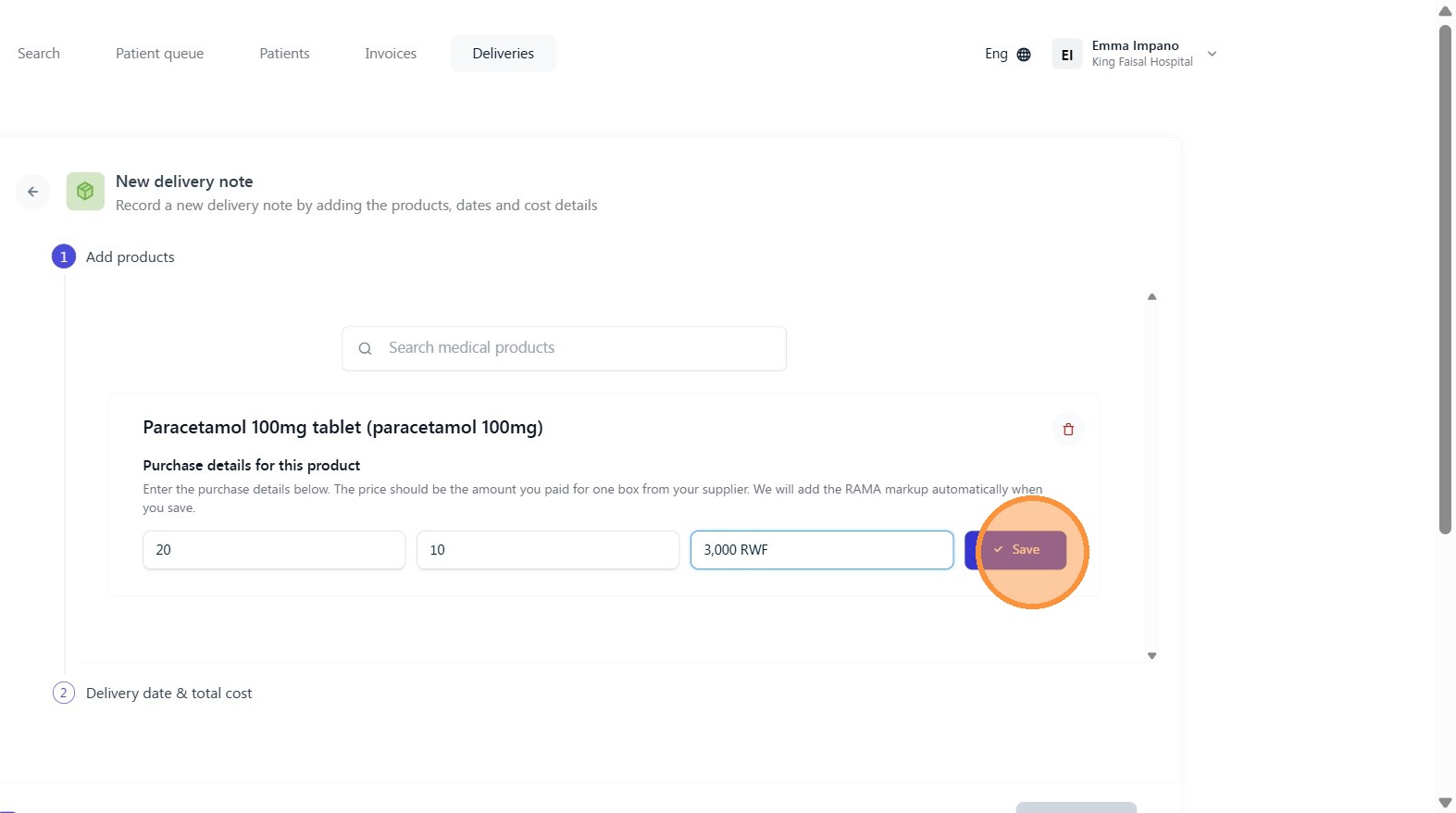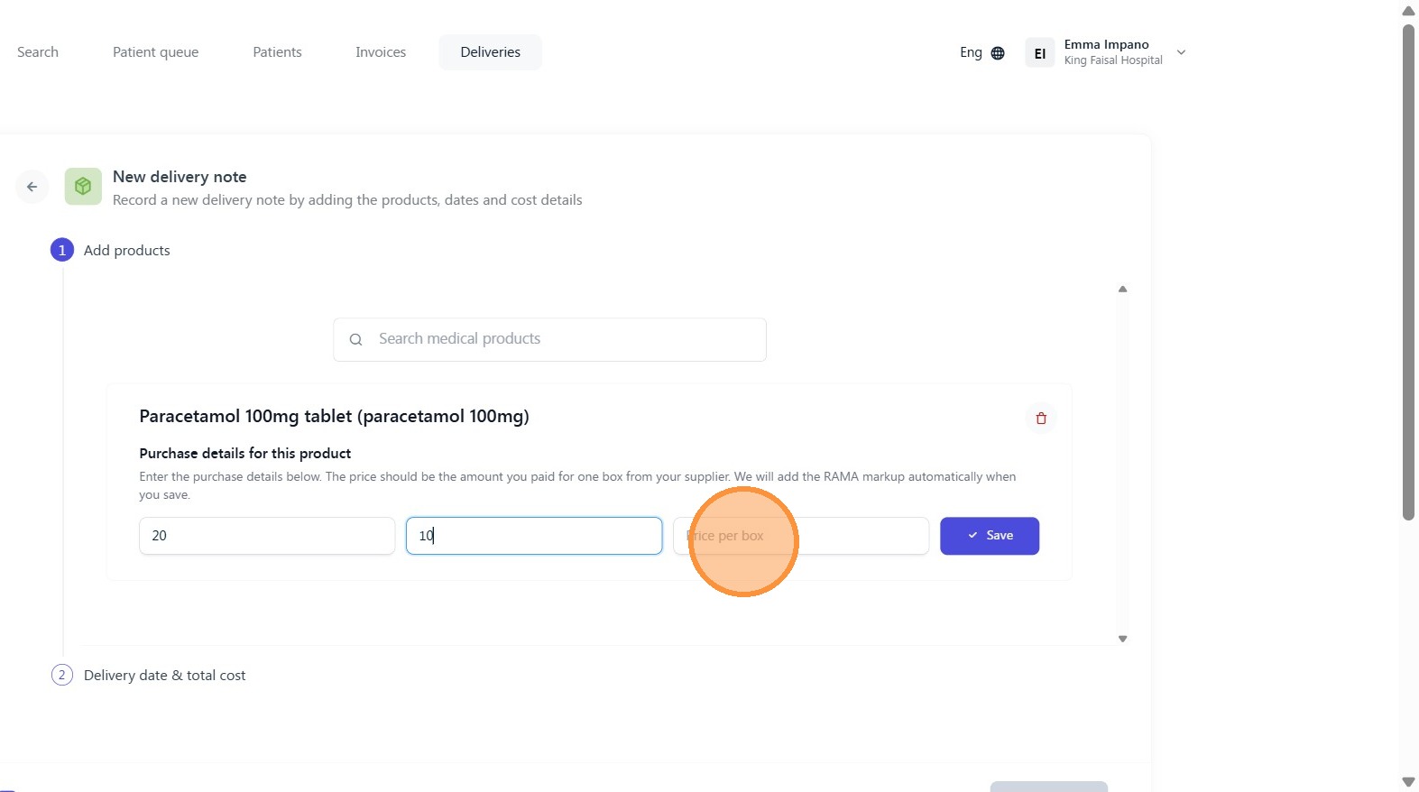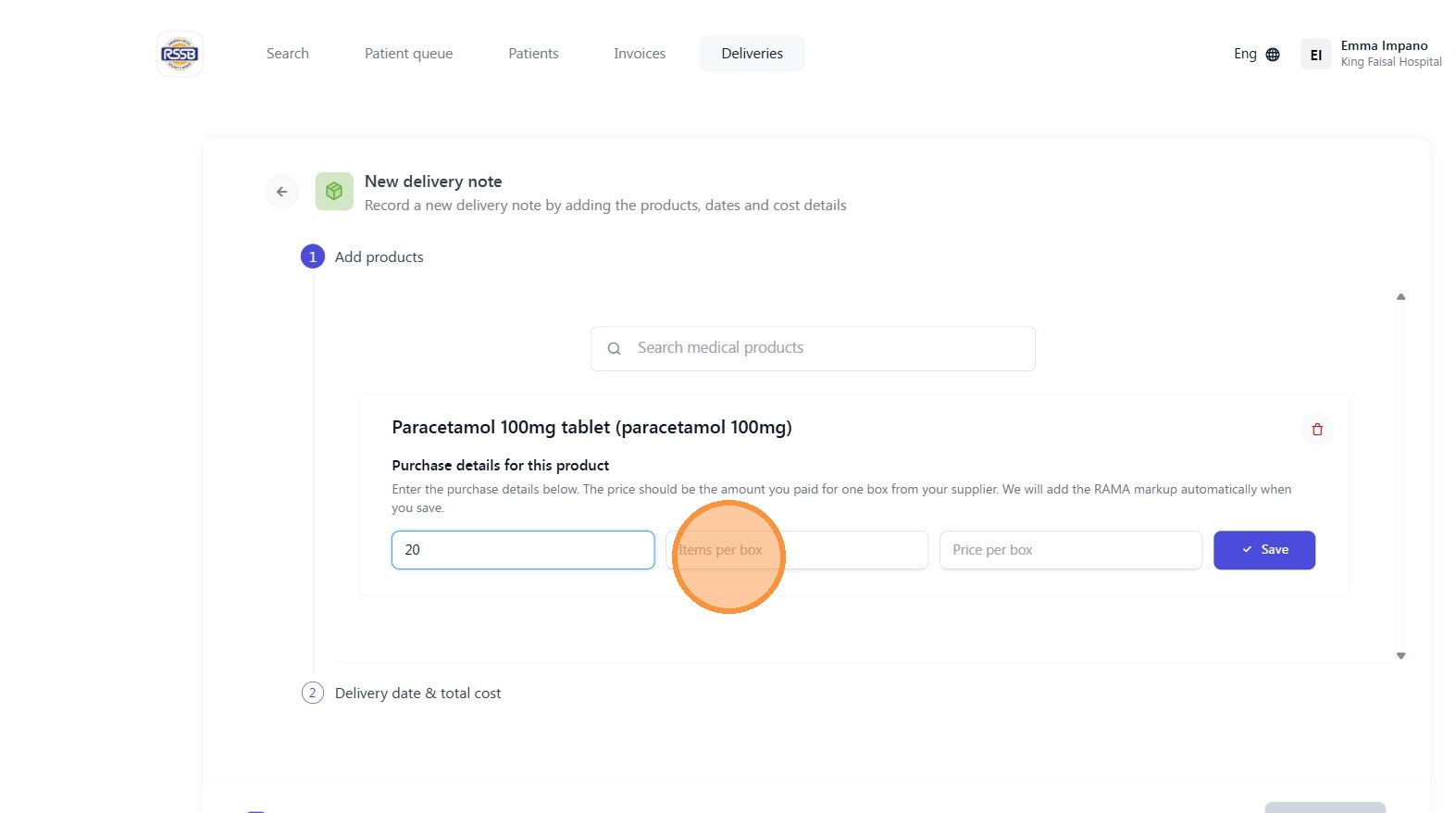 Click the "Number of boxes" field to add the boxes as it appears on delivery note.
